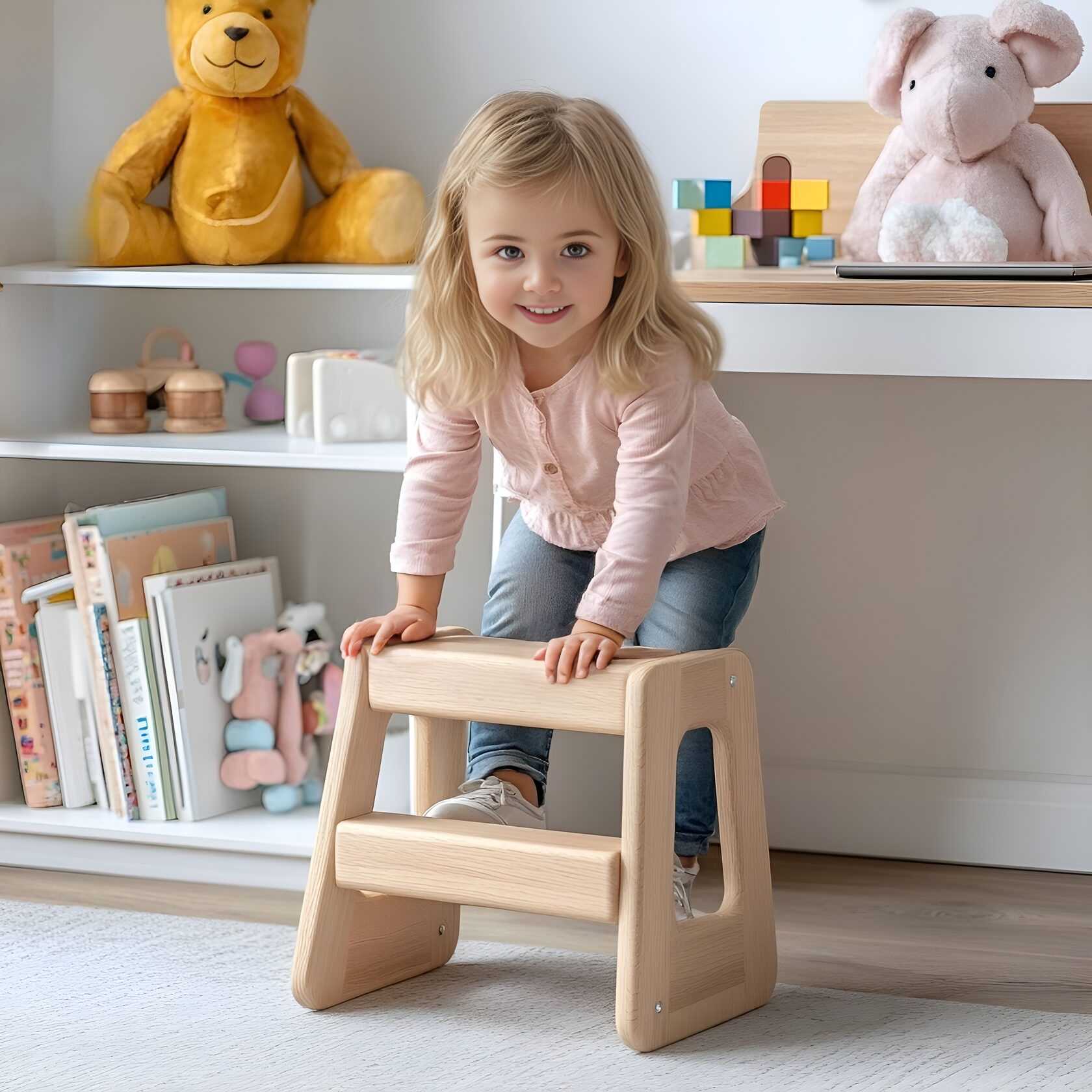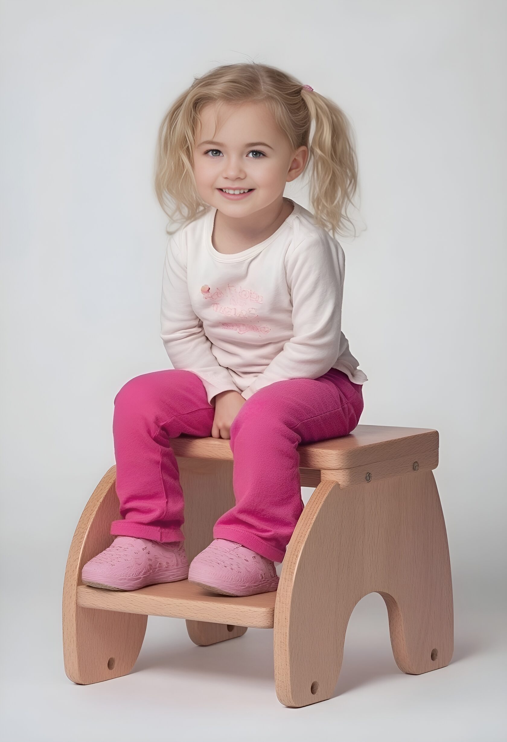 • Превратите табурет-ступеньку в мини-сцену: Положите на него небольшой коврик или ткань, чтобы создать мини-сцену. Ребёнок может устраивать кукольные представления, танцевать или разыгрывать сказки.